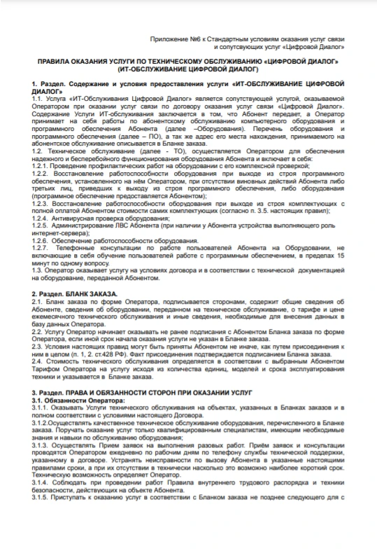 Правила оказания услуги по техническому обслуживанию «Цифровой Диалог»